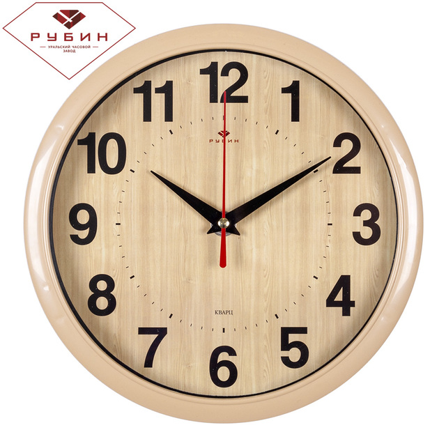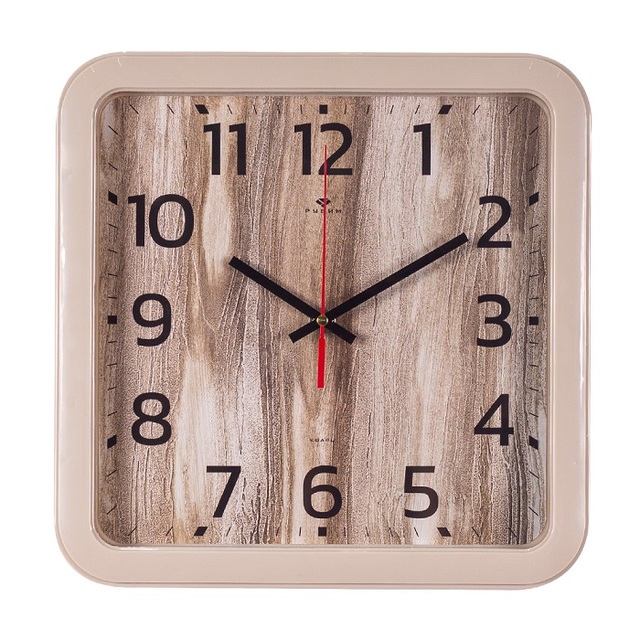 Часы настенные 7667-013 квадрат 29х29см, корпус бежевый "Текстура дерево" "Рубин" /1/10/