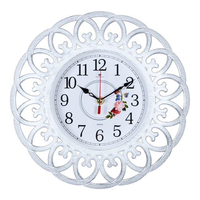 Часы настенные 3524-006 круг d=35 см, корпус белый с серебром "Классика" "Рубин" /1/10/