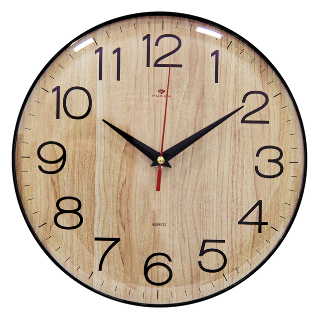 Часы настенные 3024-143 круг d=30см, корпус черный "Текстура дерева" "Рубин" /1/10/