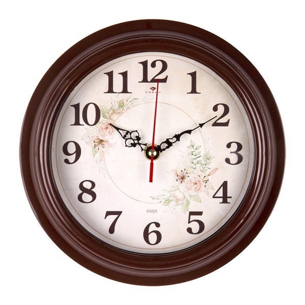 Часы настенные 2121-007 круг d=21см, корпус коричневый "Розы" /1/10/