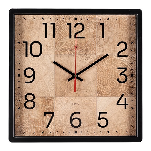 Часы настенные 3028-012 квадрат 30х30см, корпус черный "Фактура" Рубин /1/10/