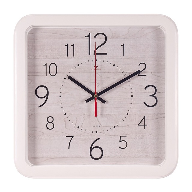 Часы настенные 7667-012 квадрат 29х29см, корпус белый "Текстура дерево" "Рубин" /1/10/