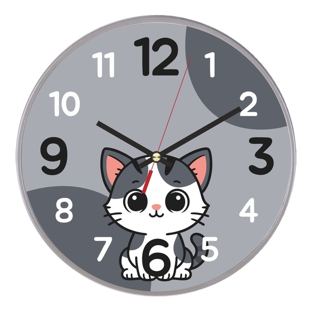 Часы настенные 2019-009 круг d=19,5см, корпус серый " Котик" /1/10/