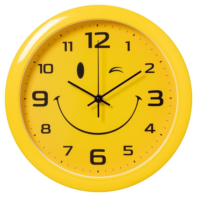 Часы настенные 6026-043 круг d=29см, корпус желтый " Смайлик" /1/10/