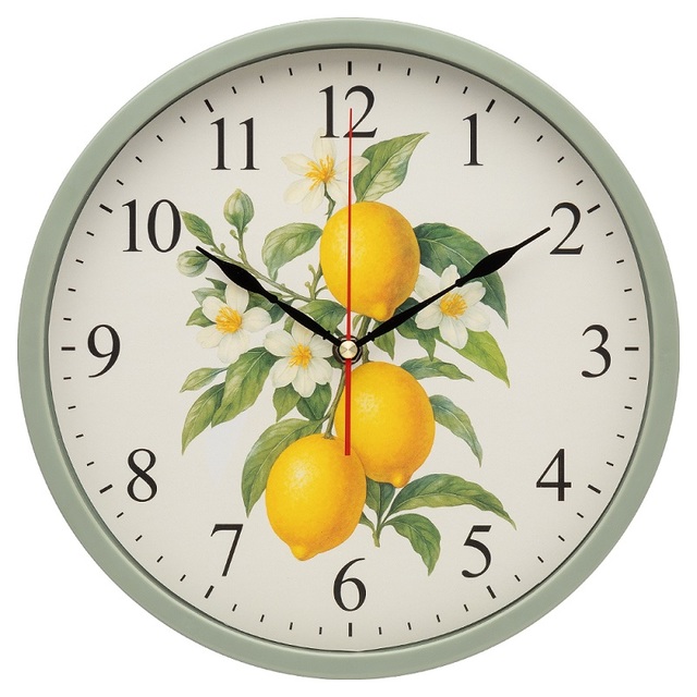 Часы настенные 3027-041 круг d=30см, корпус оливковый "Лимоны", Рубин /1/10/