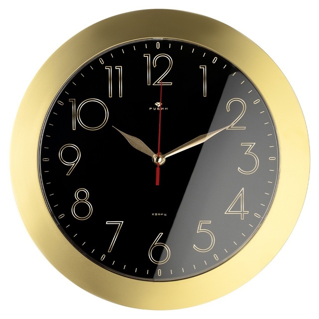 Часы настенные 3524-007 круг d=35 см, корпус черный с золотом "Классика" "Рубин" /1/10/