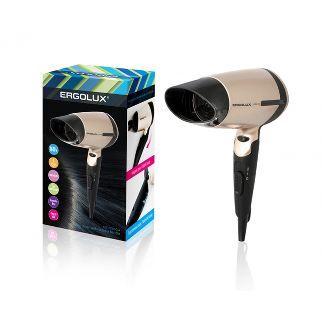 Фен ERGOLUX ELX-HD02-C64 PRO, 1600Вт, 220-240В, со складной ручкой, черный/золото /1/24/ 13130