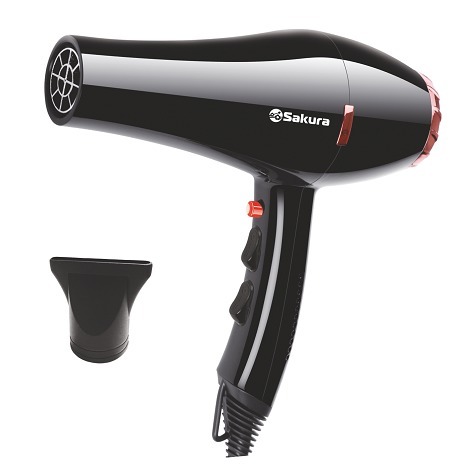 Фен SAKURA SA-4044BK, 2000Вт, Professional, АС мотор,шнур 1,8 м, 3 темп. режима, 2 скорости, хол. су