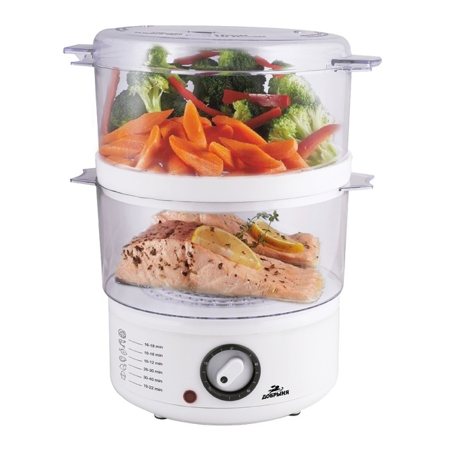 Пароварка Добрыня DO-3203, 600Вт, 5л, 2 чаши, таймер на 60мин /1/6/