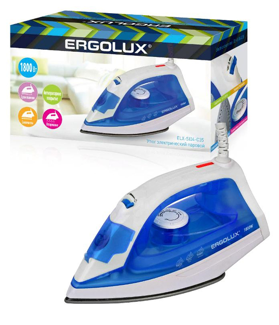 Утюг ERGOLUX ELX-SI04-C35 синий/белый (паровой электр. утюг, тефлон, 1800Вт, 220-240В) /1/12/ 13975
