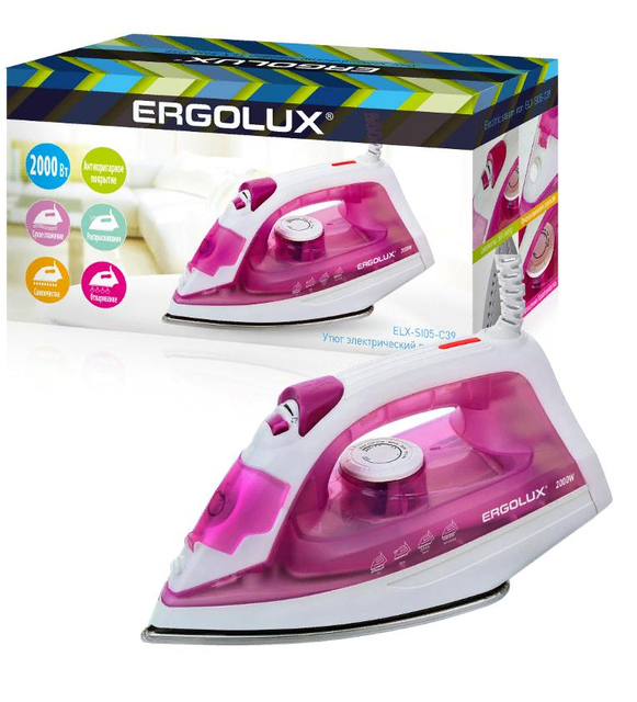 Утюг ERGOLUX ELX-SI05-C39 фиолетовый/белый (паровой электр. утюг, тефлон, 2000Вт, 220-240В) /1/ 1397