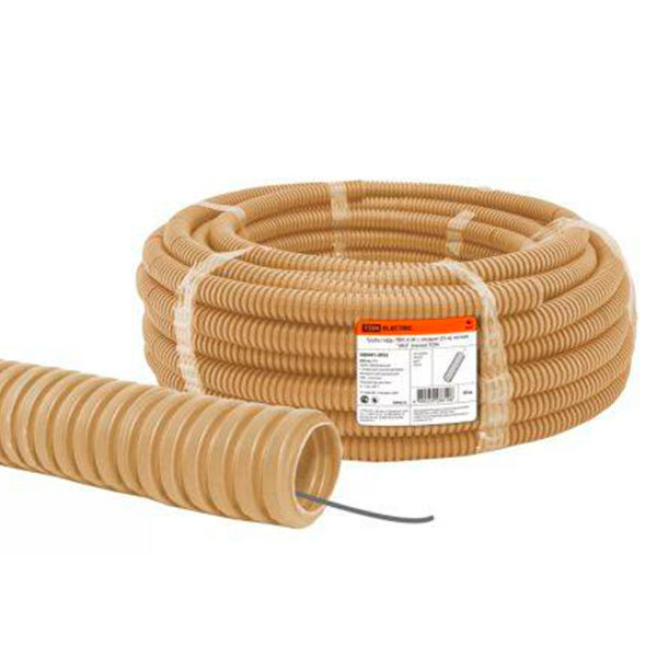 Труба гофр. самозатухающий ПВХ d 25 с зондом (25 м) легкая "ЭКО" (сосна) TDM /25/
