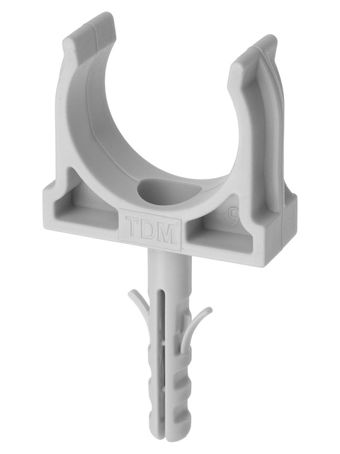 Крепеж-клипса для трубы 25мм с дюбелем (100шт) серая, TDM /100/
