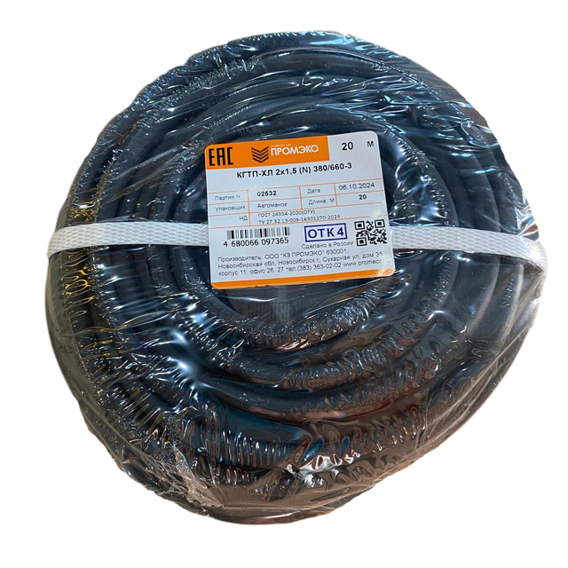 Кабель КГтп-ХЛ 2х1,5 (N) 380/660-3 (бухта 20м)/1