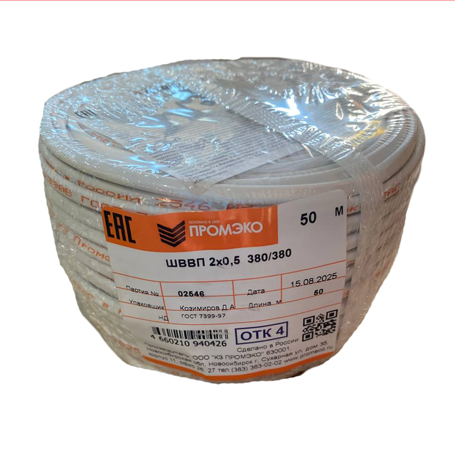 Провод ШВВП 2х0,5 ГОСТ 7399-97 (бухта 50м)/1