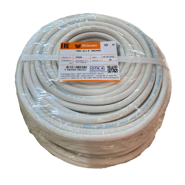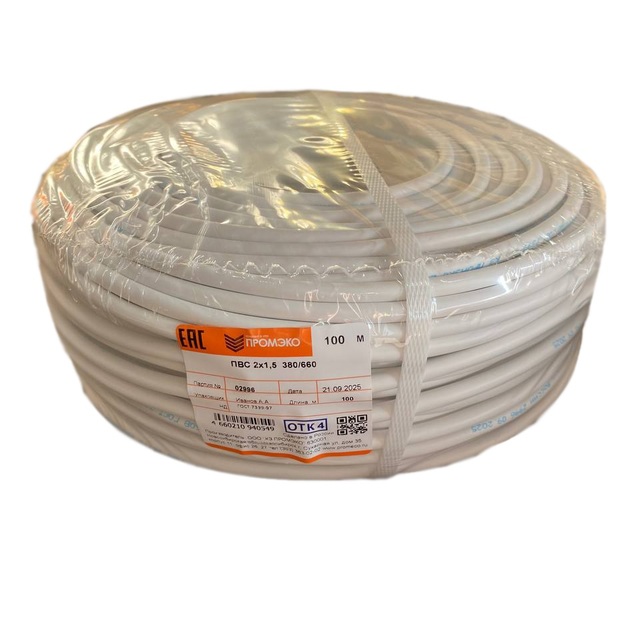 Провод ПВС 2х1,5 ГОСТ 7399-97 (бухта 30м) /1/