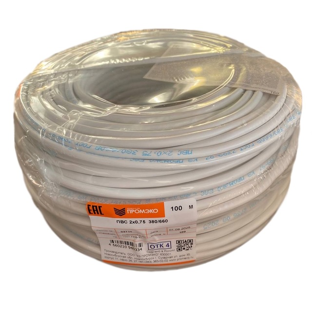 Провод ПВС 2х0,75 ГОСТ 7399-97 (бухта 100м) /100/