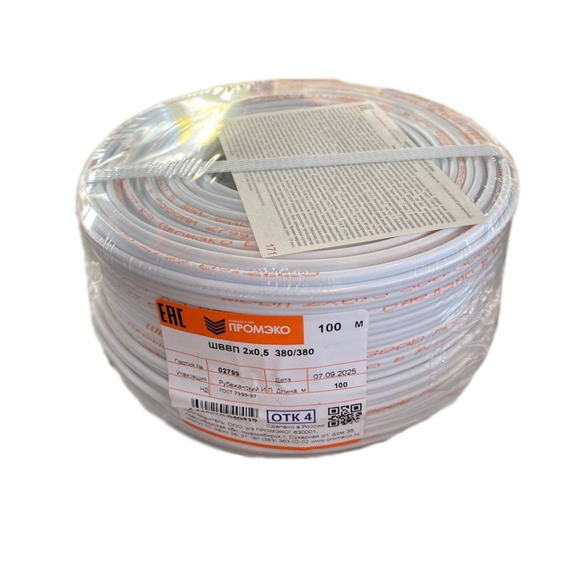 Провод ШВВП 2х0,5 ГОСТ 7399-97 (бухта 100м) /100/