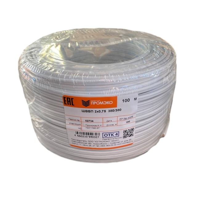 Провод ШВВП 2х0,75 ГОСТ 7399-97 (бухта 100м) /100/