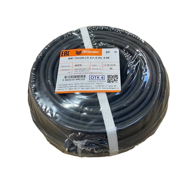 Кабель ВВГ-Пнг(А)-LS 2х1,5 (N) -0.66 ГОСТ 31996-2012 (бухта 20м) /1/