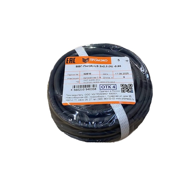 Кабель ВВГ-Пнг(А)-LS 2х2,5 (N) -0.66 ГОСТ 31996-2012 (бухта 5м) /1/