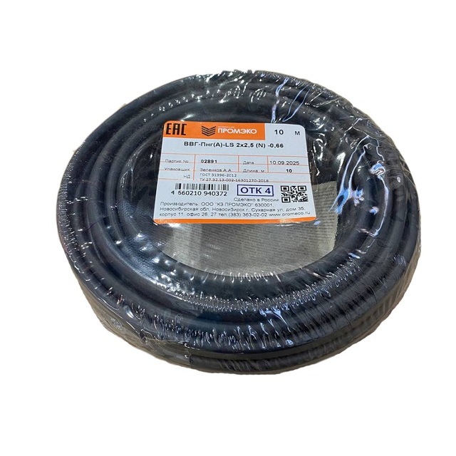 Кабель ВВГ-Пнг(А)-LS 2х2,5 (N) -0.66 ГОСТ 31996-2012 (бухта 10м) /1/