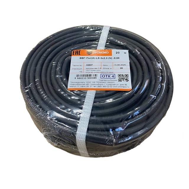 Кабель ВВГ-Пнг(А)-LS 2х2,5 (N) -0.66 ГОСТ 31996-2012 (бухта 20м) /1/