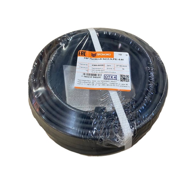 Кабель ВВГ-Пнг(А)-LS 3х2,5 (N,PE) -0.66 ГОСТ 31996-2012 (бухта 10м) /1/