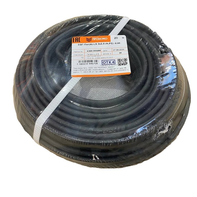 Кабель ВВГ-Пнг(А)-LS 3х2,5 (N,PE) -0.66 ГОСТ 31996-2012 (бухта 20м) /1/
