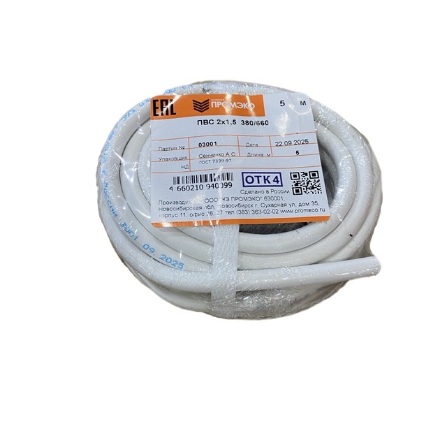Провод ПВС 2х1,5 ГОСТ 7399-97 (бухта 5м) /1/