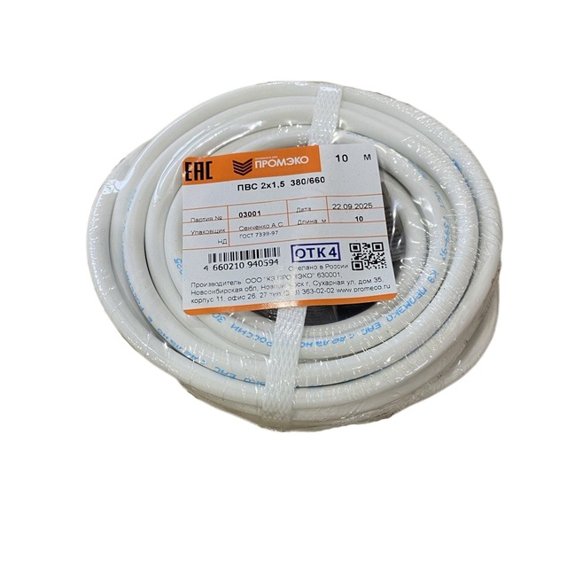 Провод ПВС 2х1,5 ГОСТ 7399-97 (бухта 10м) /1/