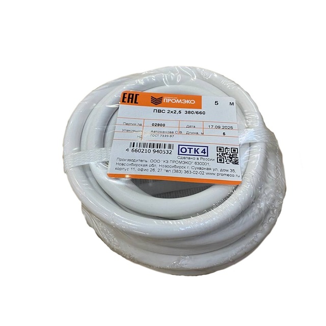 Провод ПВС 2х2,5 ГОСТ 7399-97 (бухта 5м) /1/