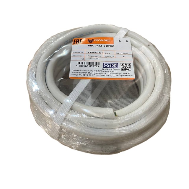 Провод ПВС 3х2,5 ГОСТ 7399-97 (бухта 5м) /1/