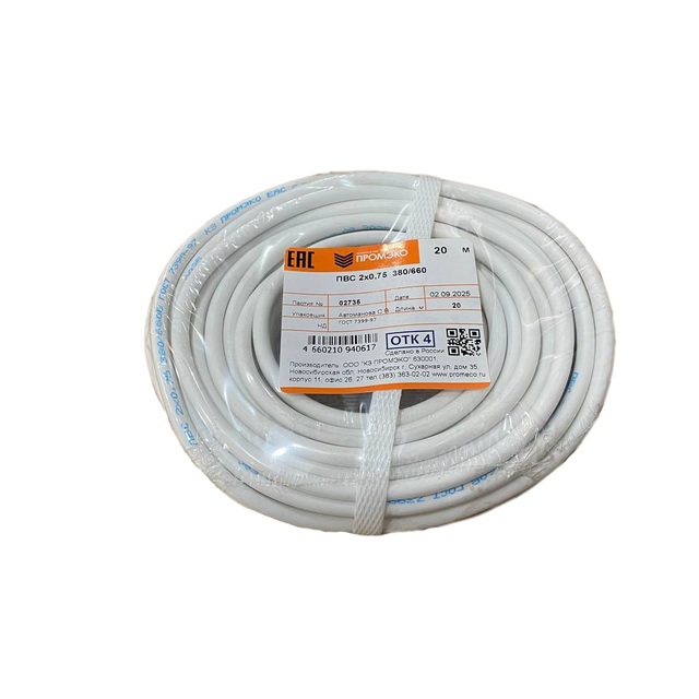 Провод ПВС 2х0,75 ГОСТ 7399-97 (бухта 20м) /1/