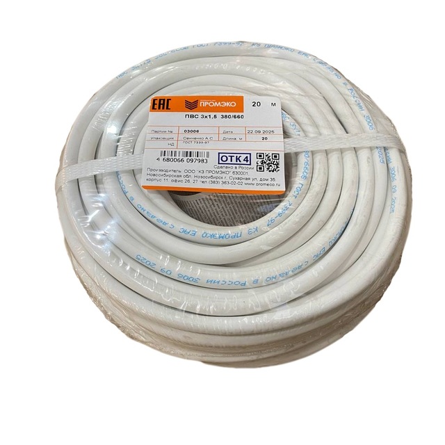 Провод ПВС 3х2,5 ГОСТ 7399-97 (бухта 20м) /1/