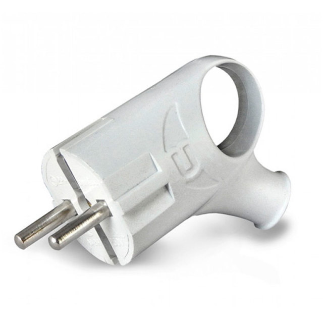 Вилка "UNIVersal" угловая с ушком с/з белая 16А 250В /35/350/ А112