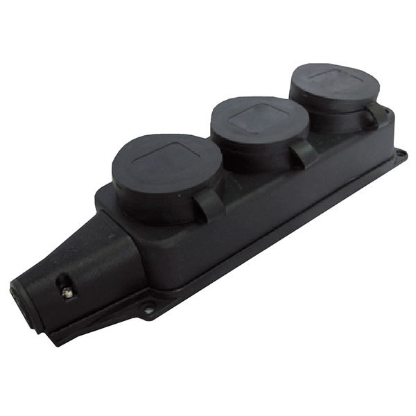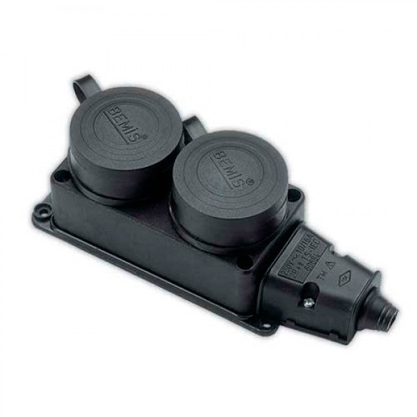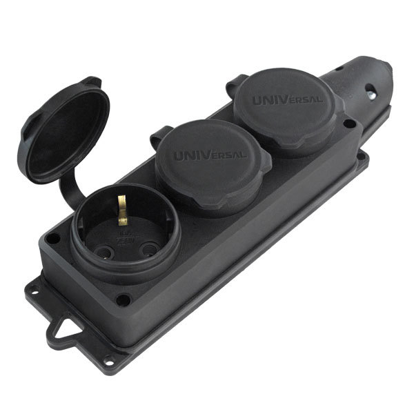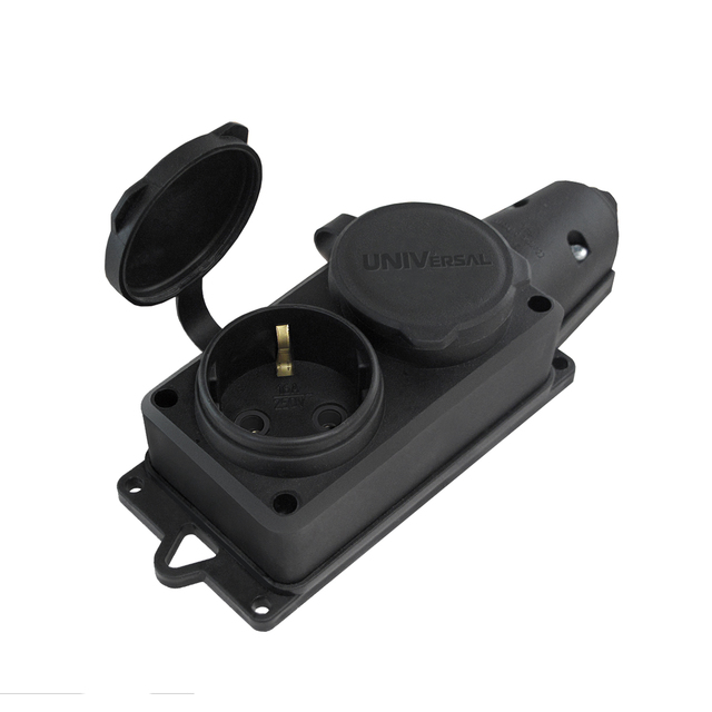Колодка "UNIVersal" 2-х местная однофазная с заглушками с/з каучук 16А 250В IP44 (еврослот) /1/10/60