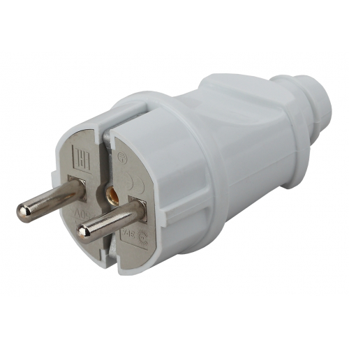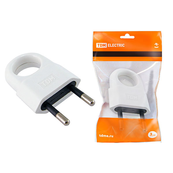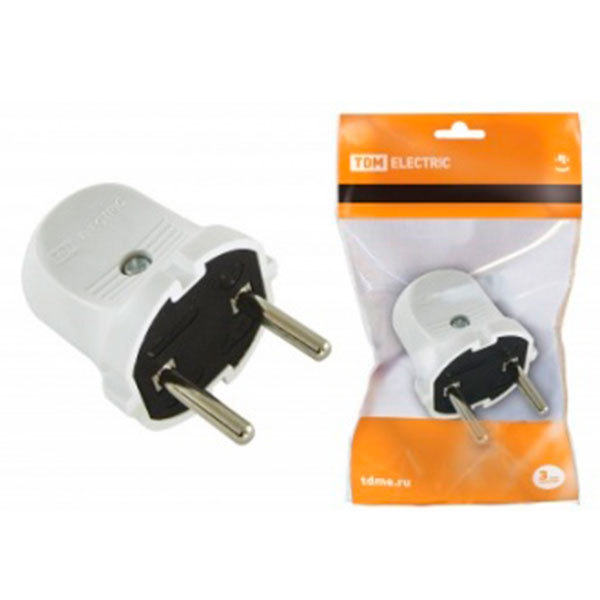Вилка б/з с кольцом белая 10А 250В (евровилка CEE 7/16) TDM /1/50/