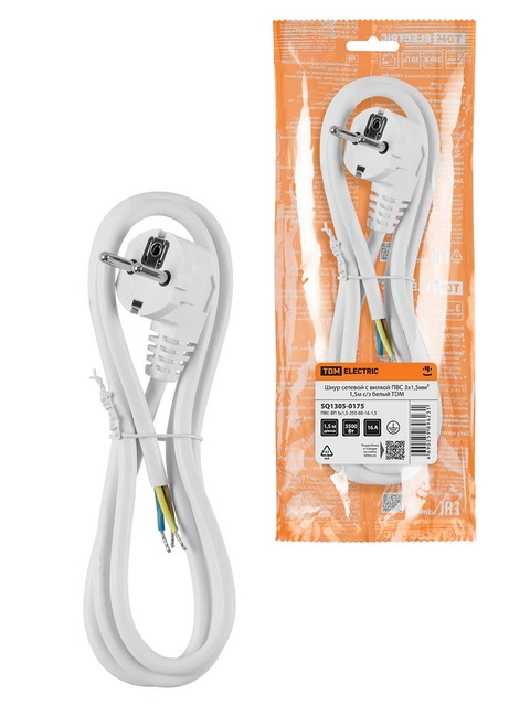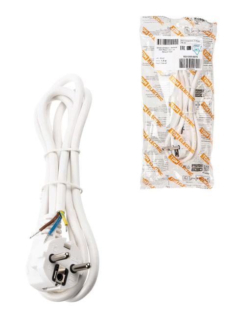 Шнур сетевой с вилкой, ПВС-ВП, 3x0,75мм?, 1,5м, с/з, белый, TDM /1/