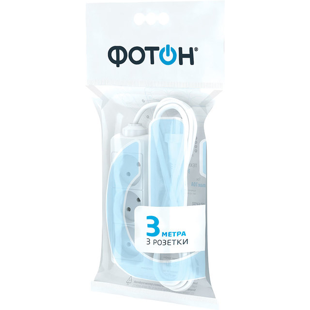 Удлинитель сетевой "ФОТОН" 10-33 (1х3) Для дома 3м, 10А, белый /1/20/