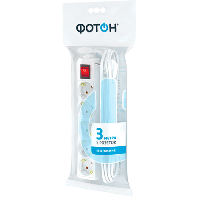 Удлинитель сетевой "ФОТОН" 10-53 (1х3) Для дома 5м, 10А, белый /1/20/