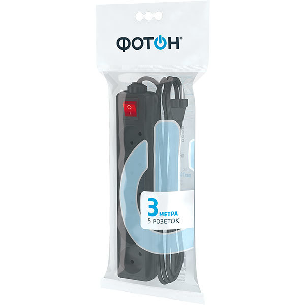 Удлинитель сетевой "ФОТОН" 10-53 (1х3) Для дома 5м, 10А, черный /1/20/