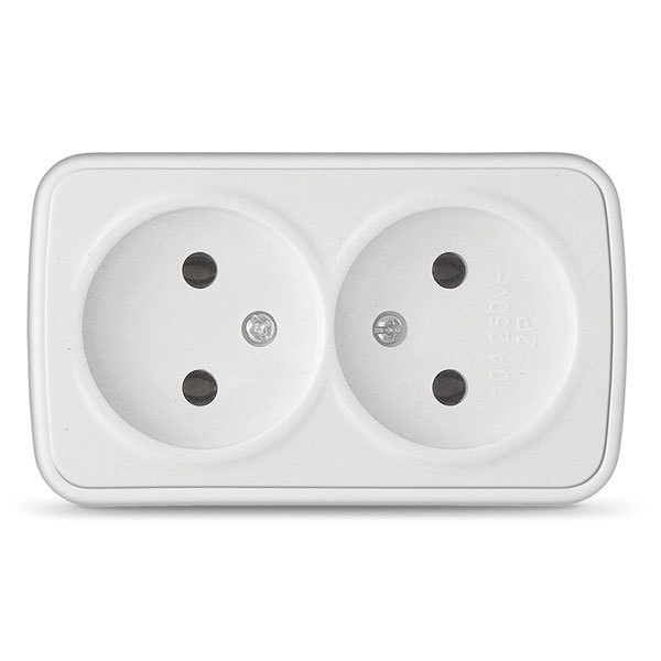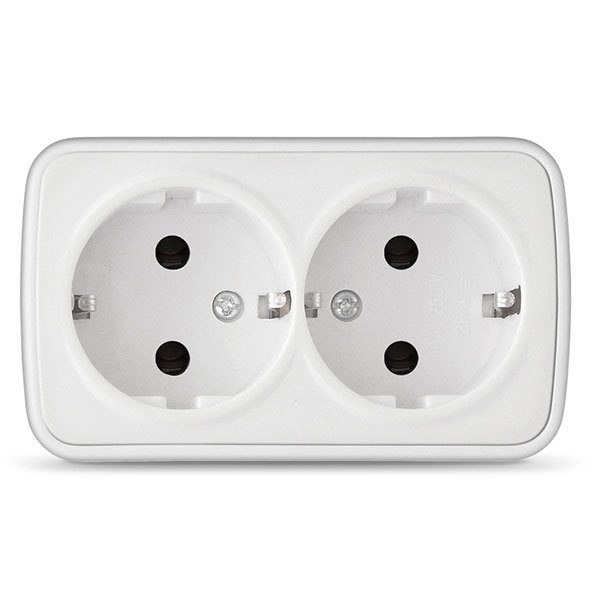 Розетка двухместная "СОЮЗ" серия "Электра" с/з, о/у, 16А, 220В, белая (еврослот) /10/100/ 0020