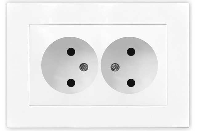 Розетка двухместная "UNIVersal" серия "Афина" б/з, с/у, 16А, 220В, белая /1/10/ A0102