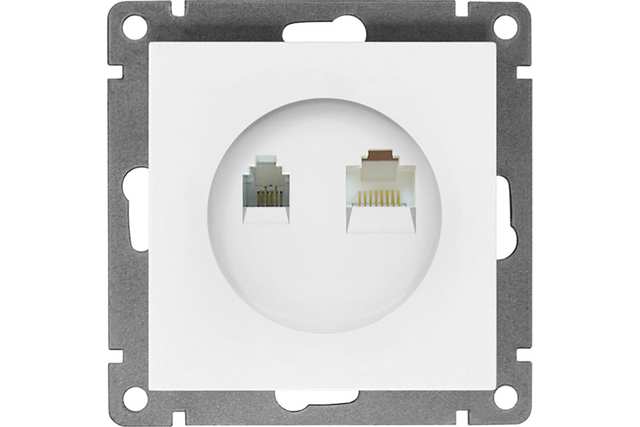 Розетка компьютерная+телефонная "UNIVersal" серия "Афина", с/у, 1А, RJ45, RJ12, белая /1/10/ A0052