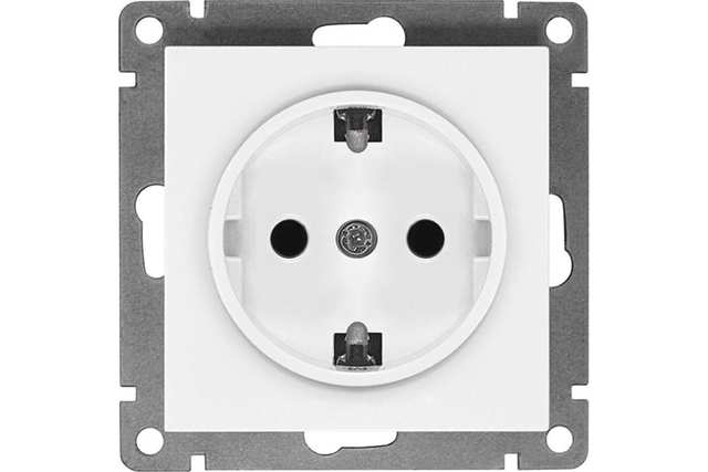 Розетка одноместная "UNIVersal" серия "Афина" б/з, с/у, 16А, 220В, белая /1/10/ A0022