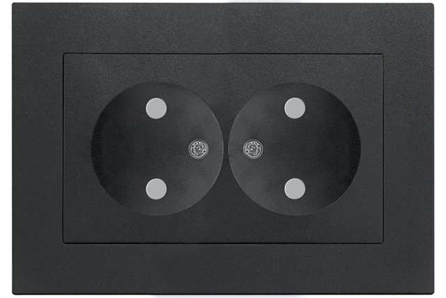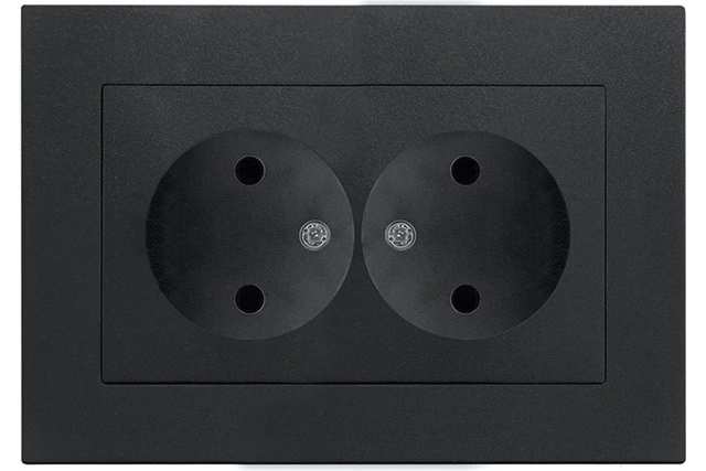 Розетка двухместная "UNIVersal" серия "Афина" б/з, с/у, 16А, 220В, графит /1/10/ A0102-Gr