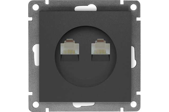Розетка компьютерная двухместная "UNIVersal" серия "Афина" с/у, 1А, RJ45, графит (еврослот) /1/10/ 1