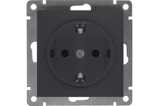 Розетка одноместная "UNIVersal" серия "Афина" б/з, с/у, 16А, 220В, графит /1/10/ A0022-Gr