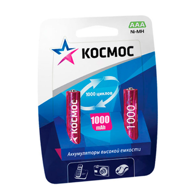Космос AAA 1000mAh Ni-MH R03 BL-2 /24/288/